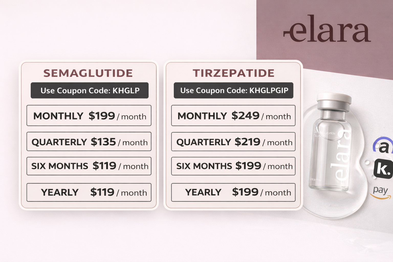 Elara we believe in empowering women through a comprehensive journey that combines medical weight loss, mental health coaching, and personalized GLP-1 agonists like semaglutide and tirzepatide with dietary and exercise support. At Elara, we're devoted to reimagining wellness with great formulations that simplify the complex around women's health and empower you to feel your best.